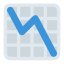 A downward trending chart graph. Used to express decline, loss, or situations going downhill.
