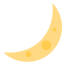 A crescent moon symbol used to indicate night time, bedtime, or a dreamy romantic atmosphere.