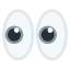 Two eyes looking forward. Used to show curiosity, suspicion, or that you're watching something interesting.