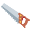 A traditional hand saw used for cutting wood. It's for talking about carpentry, DIY projects, building things, or any hands-on work.