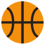 Un balón de baloncesto naranja con líneas negras. Se usa para referirse al deporte, al juego o a la acción de jugar.