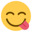 Un emoji con cara feliz y lengua fuera. Se usa para expresar que algo está delicioso, que tienes hambre o que algo te parece muy apetitoso.