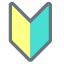 Es un emoji de un diamante amarillo con un rombo verde en el centro. Representa el símbolo japonés para conductores nuevos, pero se usa para etiquetar a cualquier persona o cosa novata o en aprendizaje.
