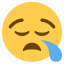 Es un emoji de cara cansada cerrando los ojos con una lágrima de sueño. Se usa para expresar fatiga extrema, somnolencia o cuando algo es aburrido.