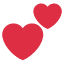 Son dos corazones rosas y pequeños, uno más grande que el otro, entrelazados. Se usa para mostrar amor, cariño profundo o una conexión muy especial con alguien.