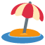 Un emoji que muestra una playa de arena con una sombrilla de colores. Se usa para hablar de vacaciones, buen tiempo, relax o para dar envidia sana.