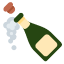 Botella de champán con el corcho recién salido. Se usa para celebrar logros, brindar o expresar mucha alegría.