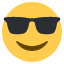 Es una carita sonriente con gafas de sol. Sirve para expresar que estás súper cool, con confianza o pasándolo genial.