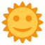 Es un emoji de un sol amarillo con cara sonriente. Se usa para representar el buen tiempo, la alegría y transmitir energía positiva.
