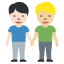 Un emoji de dos hombres con tonos de piel diferente (claro y medio-claro) caminando de la mano. Se usa para representar amistad, apoyo mutuo, solidaridad o una relación romántica entre hombres.