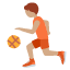 Es una persona con tono de piel medio botando una pelota de baloncesto. Se usa para hablar de deporte, actividad física, partidos o para expresar energía y competitividad.