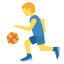 バスケットボールをドリブルしている男性の絵文字です。スポーツや運動の話題、特にバスケに関連する会話で使います。
