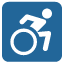 是一个蓝色方块上的白色轮椅图案,最初代表无障碍设施。现在常被网友用来幽默地表达自己不行了、要摆烂了的状态。