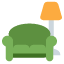 是一个由沙发和落地灯组合而成的表情符号,用来表达宅家、放松、居家舒适感或打造温馨角落。