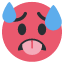 一个热到虚脱、满头大汗的表情。用来表示天气热、身体热、心里燥,或者表达对某人某事‘顶不住’了。