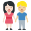 一个女生和男生手牵手的表情符号,浅肤色女生+中等浅肤色男生。用来表达甜蜜的情侣关系或亲密友谊,常在社交媒体上秀恩爱用。
