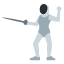 是一个戴着头盔、手持花剑的击剑运动员emoji。用来表达对决、竞争、或者开玩笑地发起挑战。