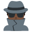 是一个深色皮肤的男性侦探表情,戴着帽子和单镜片。用来表示调查、推理、暗中观察,或者单纯表示‘我很机灵’的状态。