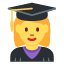 一个戴黑色学士帽、穿毕业袍的女生emoji。用来代表在校或刚毕业的女大学生,表达学习、考试、毕业等相关状态和心情。